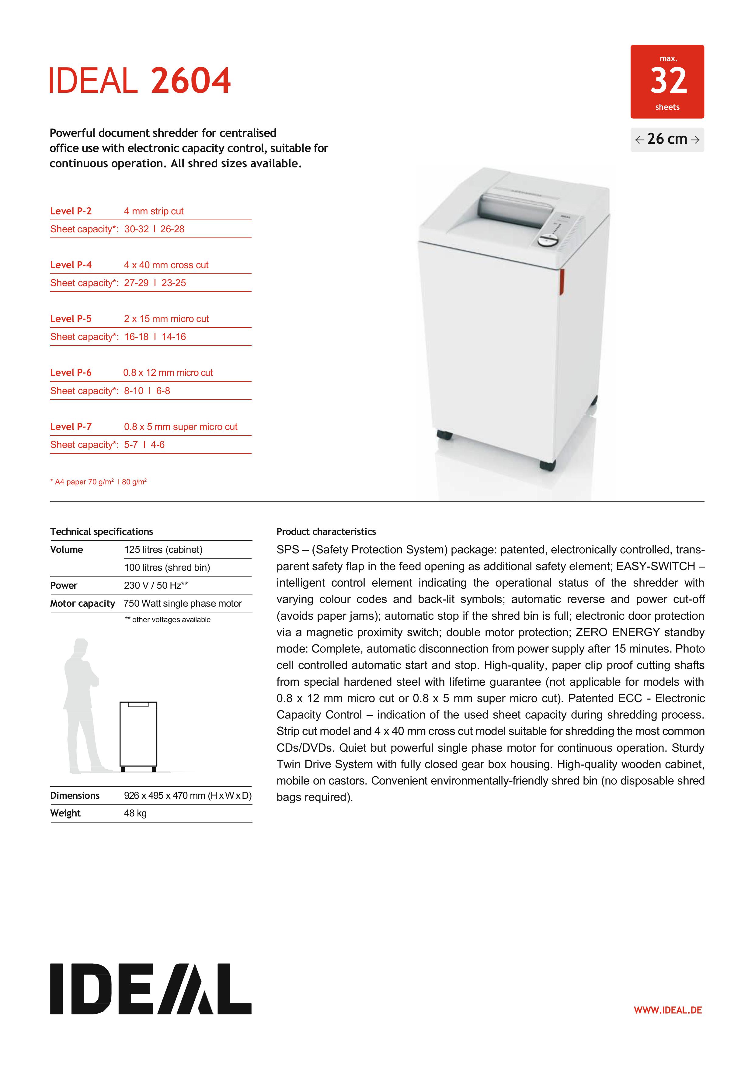 View more about IDEAL 2604 SMC Paper Shredder (Shred Capacity: 5-7 Sheets, Super Micro Cut: 0.8x5mm, Bin Capacity: 100 Liters)_Made in Germany on main site