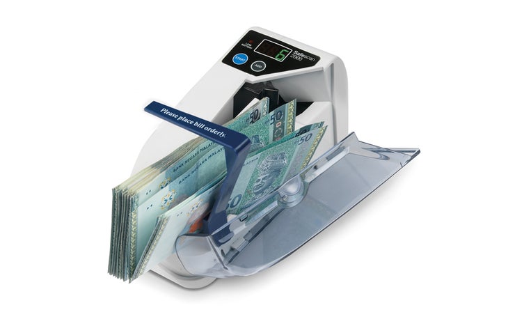 Simply insert a stack of sorted banknotes, press start, and watch the Safescan 2000 whip through them—counting up to 600 bills per minute. Need to count multiple stacks? No problem. Just press the convenient “add” button and the 2000 will automatically track the total count across individual runs.