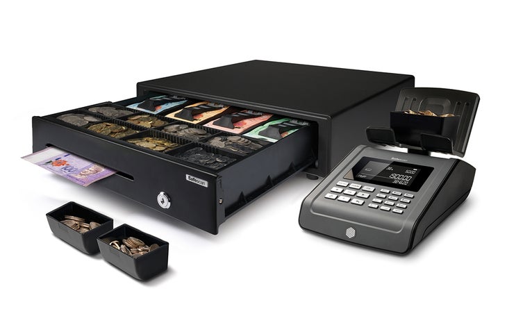 Use the feature-packed 6185 money scale to count all the LD-4141’s contents, from coins to coupons, in just a handful of minutes. And if you’re using the optional 4141CC removable coin cups, you’ll be finished even faster: just place each cup of coins right on the 6185 and weigh—no calibration required. From start to finish in under two minutes: there’s no faster way to count your till.