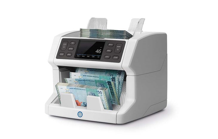 - Stops counting and presents an audio and visual alarm when a suspected banknote is detected